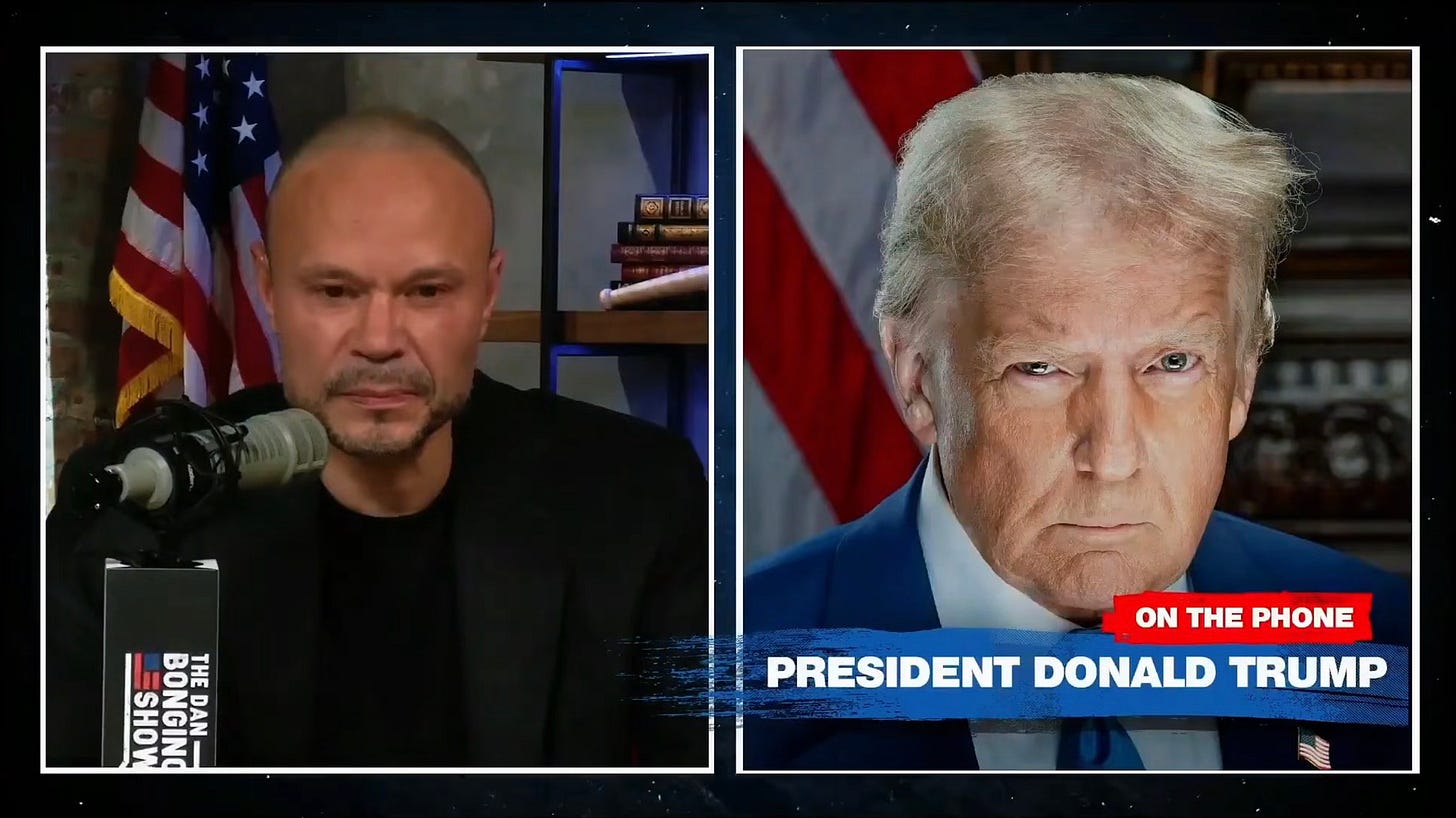 So it was Monday, and Dan Bongino, who just returned to podcasting after his stint as FBI deputy director didn’t quite work out, was interviewing Trump on his first show back. It’s still nine months before the midterms, but the president is already shifting into high gear in making his case that the Republican Party—in other words Donald Trump—should control the election.